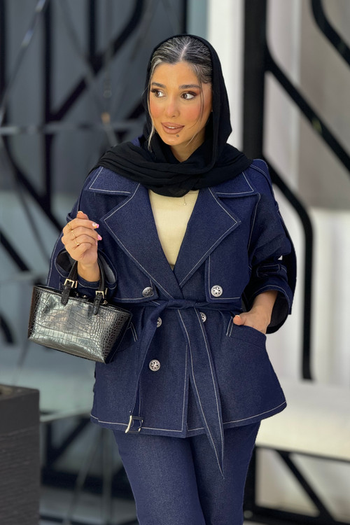 ترنچ کت جین گرم بالا و بخیه رو کار مناسب پاییز و زمستان